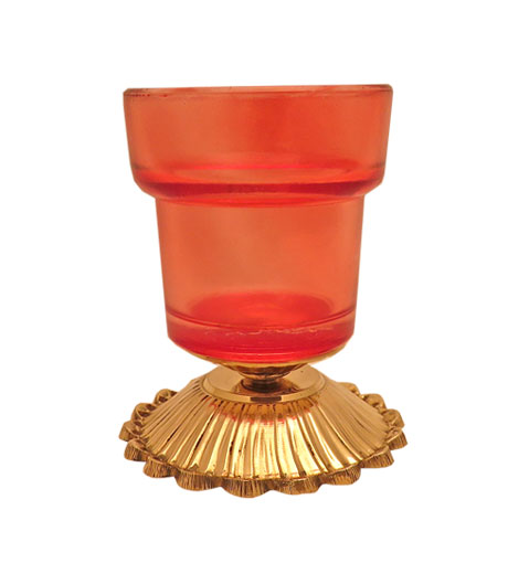GLASS RED OIL CANDLE CUP WITH BRASS BASE SKU 7359