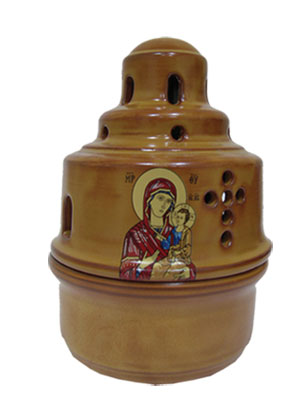 Vigil Oil Lamp Ceramic Brown with Virgin Mary/Jesus Christ SKU 2165