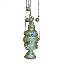 Καντηλόκουπα Γυάλινη Χαρακτή μπλέ με χαρακτό σταυρό κωδ. 2184