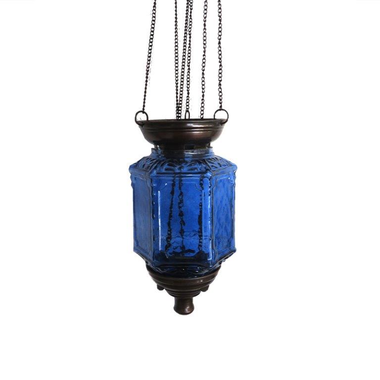 Καντηλόκουπα Γυάλινη Χαρακτή μπλέ με χαρακτό σταυρό κωδ. 2184